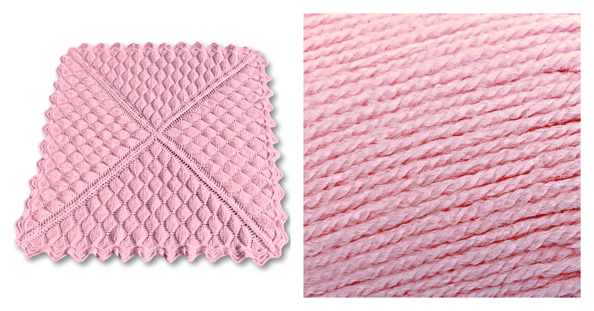 (100% Acrylic) LIGHT PINK - Embossed Foliage Reversible Blanket YARN KIT