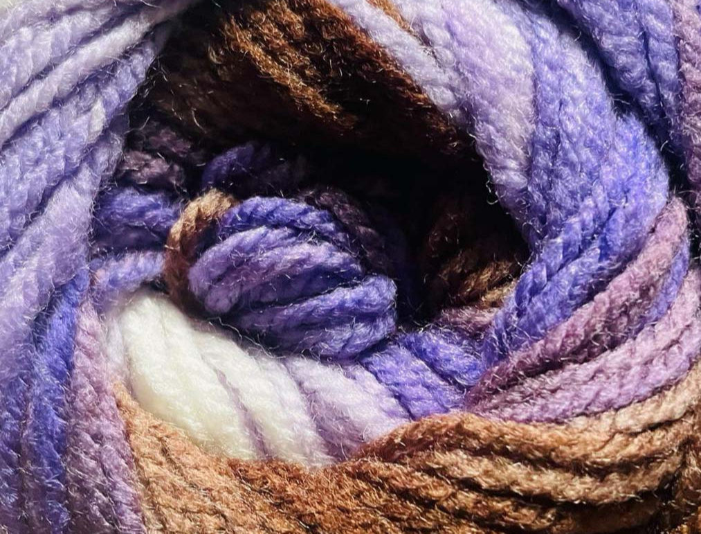Multicolored skein containing the following shades - Lilac, Lavender, Brown, Tan, and White