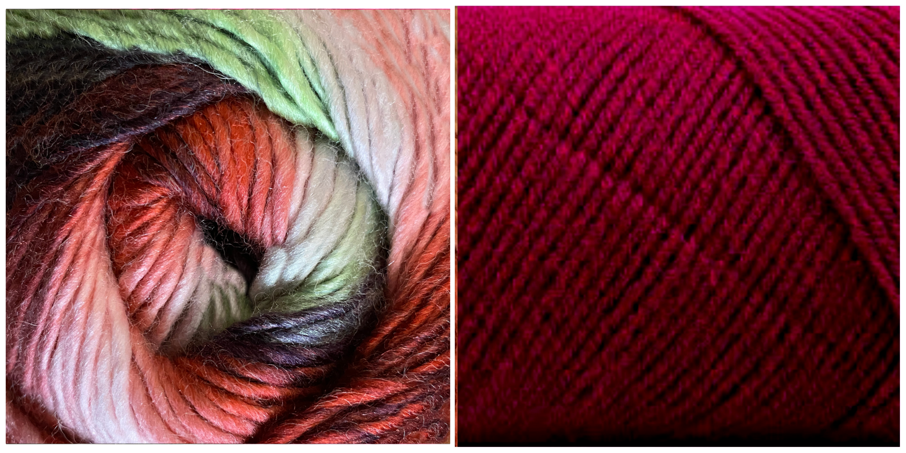 3 skeins of Bonita Yarns Dreamlicious Solid (230 yds, 210 m) and 2 skeins of Colorful Dream Chromatic (262