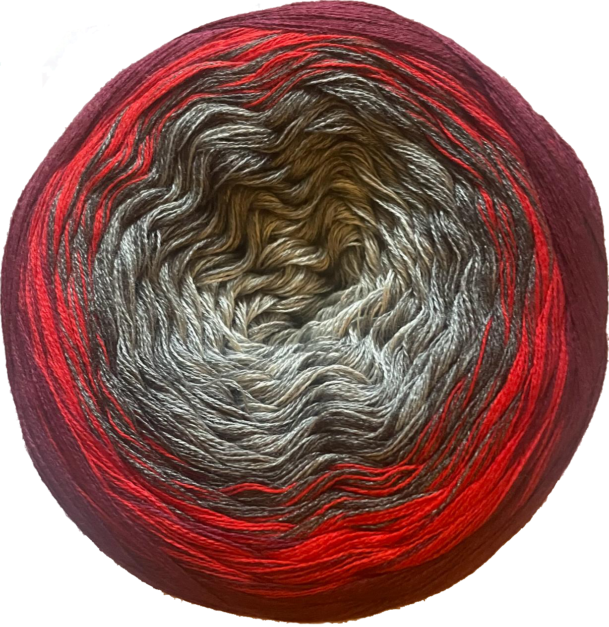Multicolored skein containing the following shades:- shades of maroon, red, burgundy, gray, white