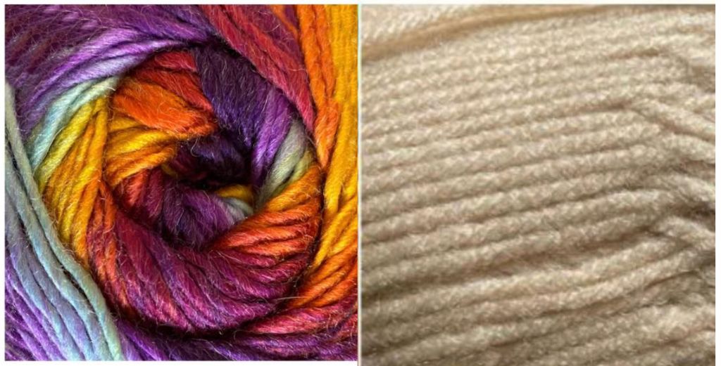 3 skeins of Bonita Yarns Dreamlicious Solid (230 yds, 210 m) and 2 skeins of Colorful Dream Chromatic (262 yds, 240 m), worsted weight (UK, AU: 8 ply). You can purchase this yarn at www.bonitapatterns.com.