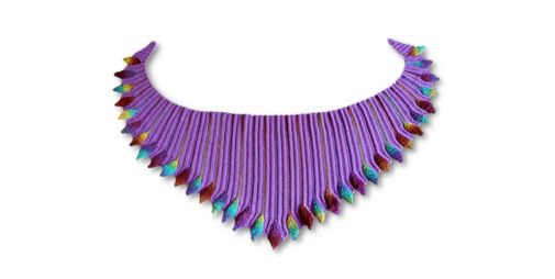 ABOUT THIS PATTERN: This crochet pattern creates an elegant shawl featuring a ribbed body in a rich purple color. The shawl is adorned with embossed, leaf-like shapes in a vibrant mix of blue, green, and brown, adding texture and visual interest along the edges. The leaf accents are evenly spaced, creating a harmonious and flowing design. This pattern allows for a variety of color combinations, making it a versatile and eye-catching accessory for any wardrobe.
