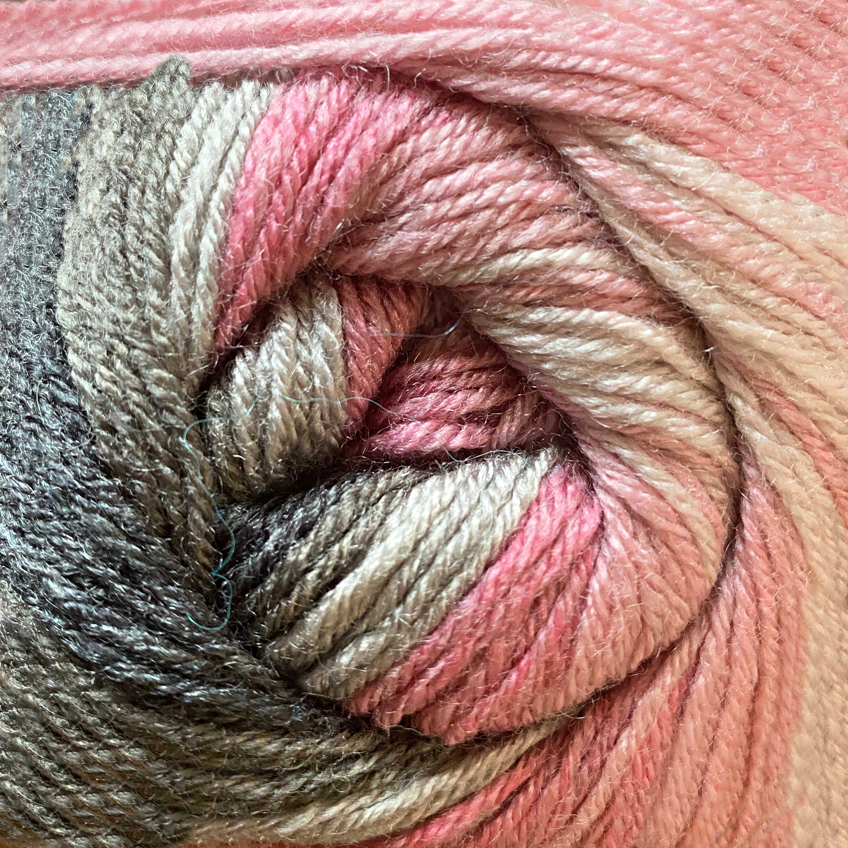 Multicolored skein containing the following shades - Ivory, Light Rose, Dark Rose, Dark Grey