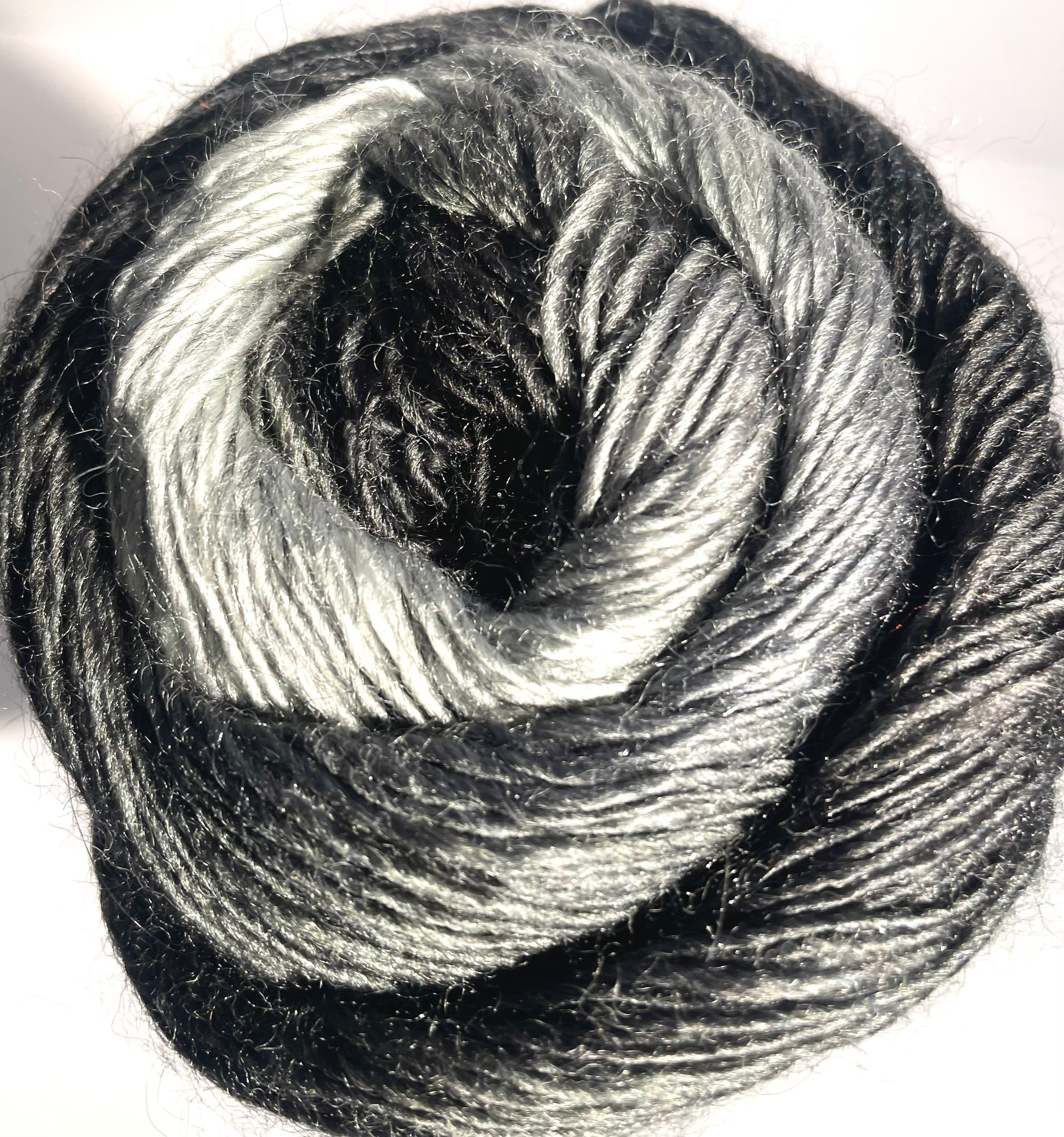 Multicolored skein containing the following shades - Ivory, Light Rose, Dark Rose, Dark Grey