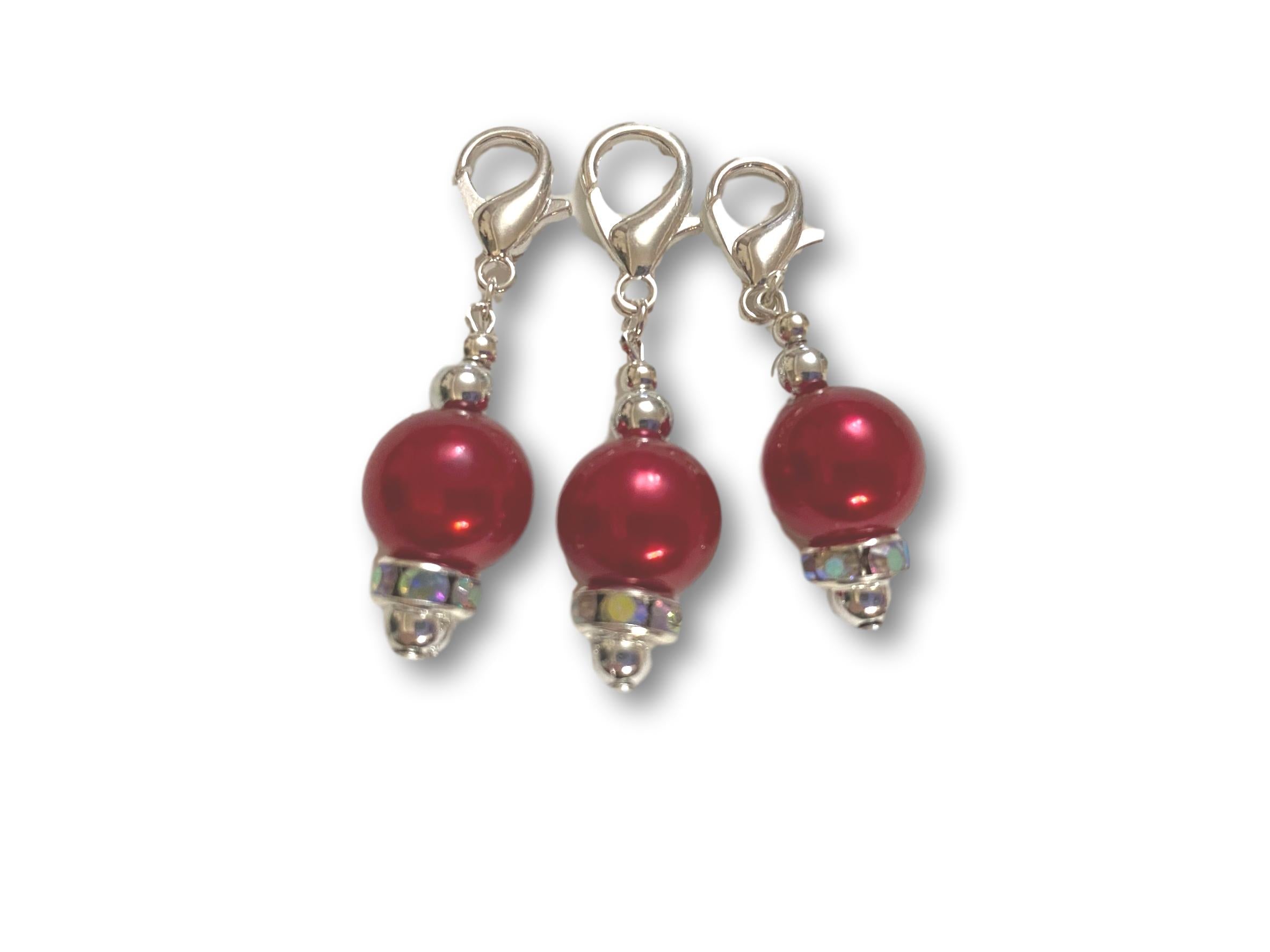 Set of 3 Stitch Markers for Crochet or Knitting with a Pearl theme design.