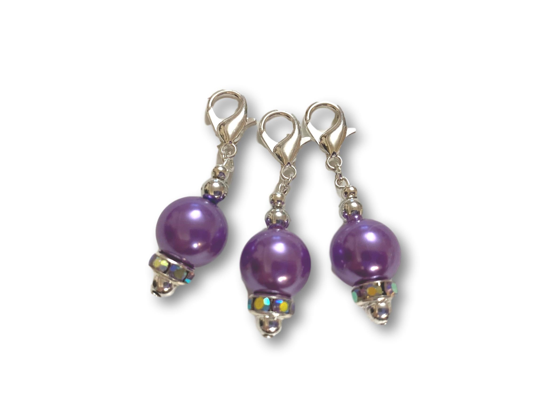 Set of 3 Stitch Markers for Crochet or Knitting with a Pearl theme design.