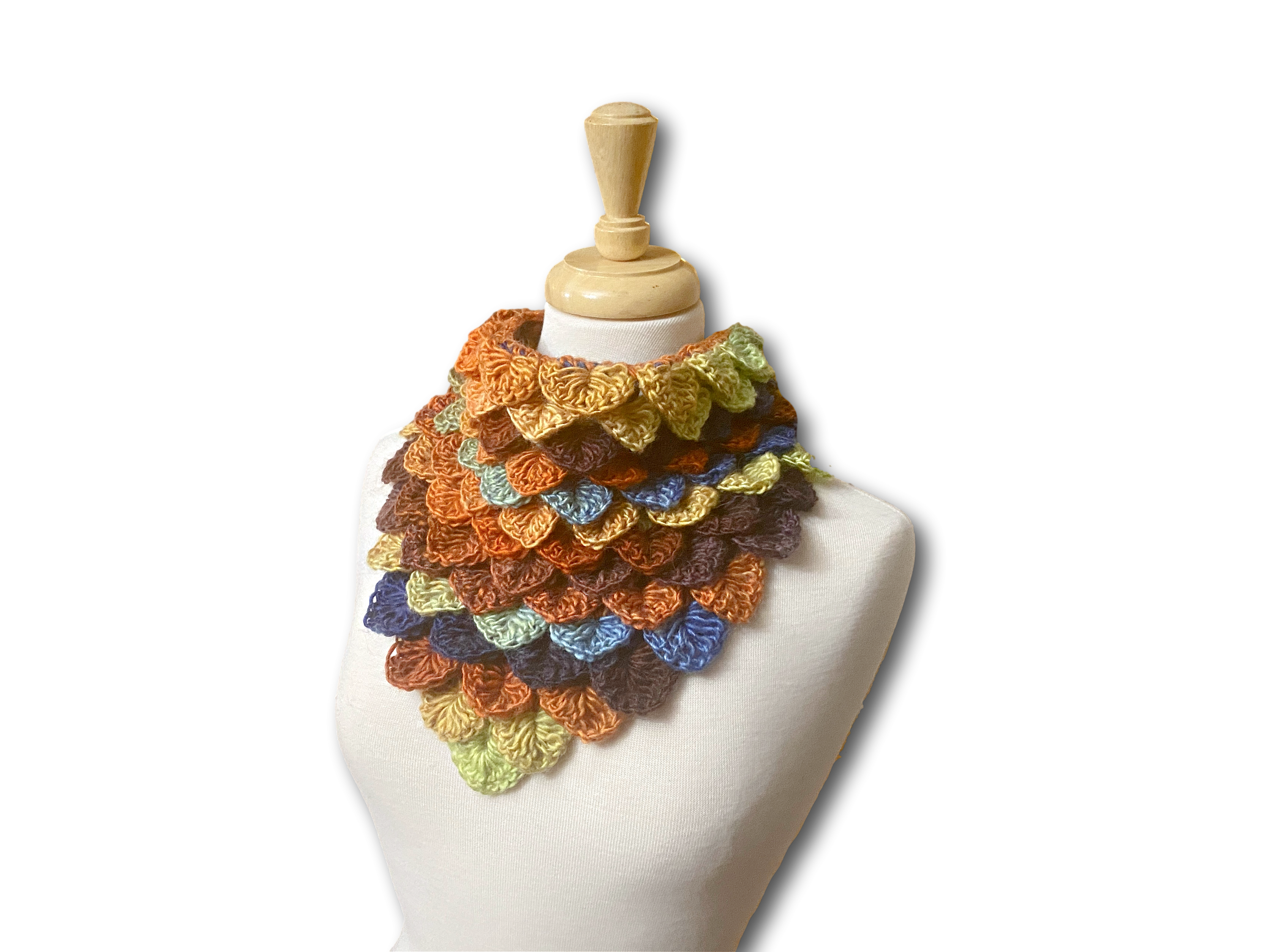 The cowl is a triangle shape, all worked in a self-striping yarn to make the color change mindlessly. The sample cowl with our Bonita Yarns Chromatic Wool in Over the Rainbow colorway (scroll down to see our yarn selection). The pattern also suggests our Dream Baby yarn (100% acrylic).