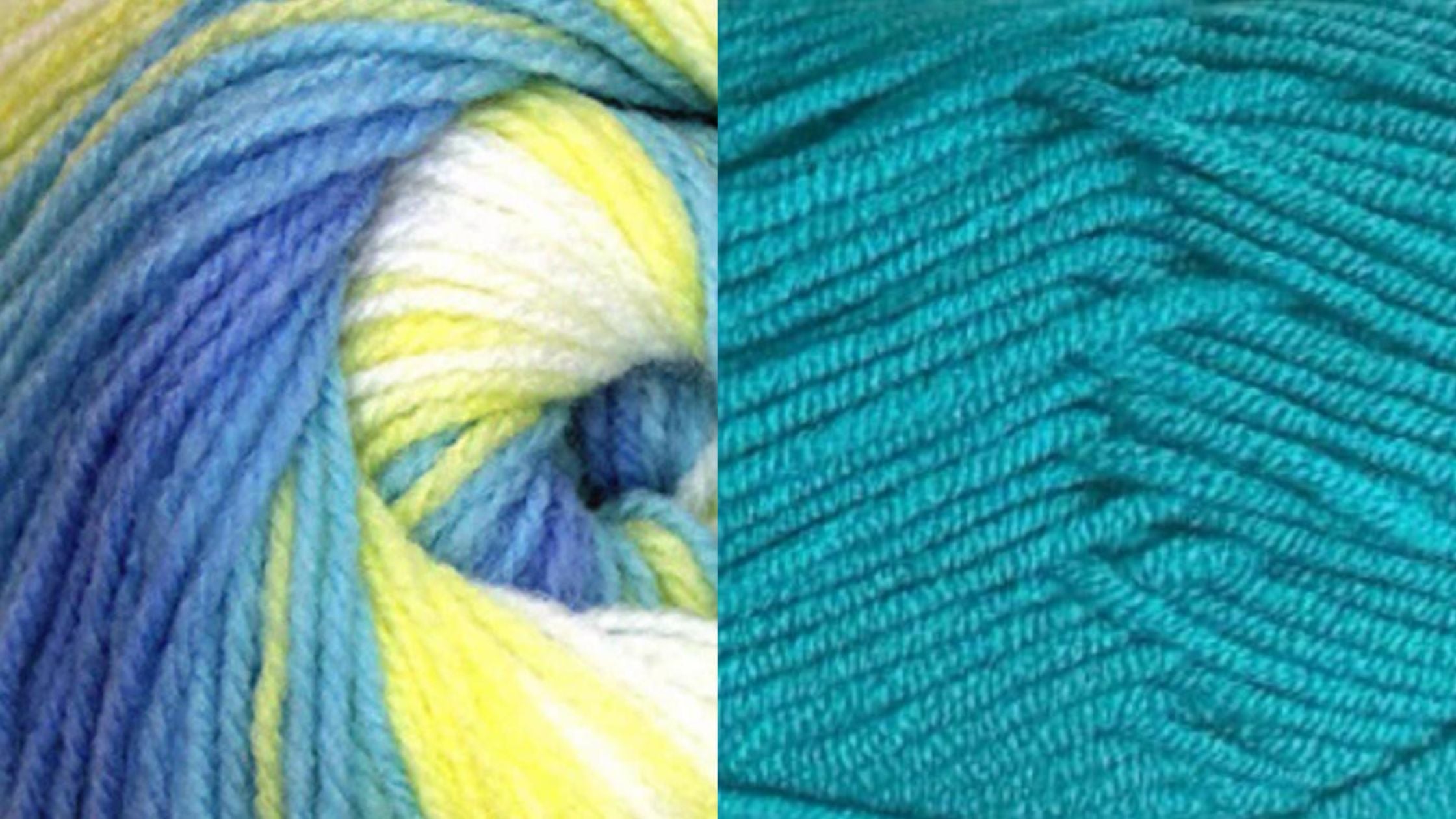• 4 balls of Bonita Yarns Dream Baby Self-Striping (DK weight; 100% acrylic; 393 yards/360m)